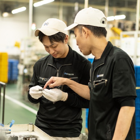 入社の決め手は現場の雰囲気の良さでした。最初は不安もありましたが、今では自動化ラインを任せてもらえるまでに成長することができました。仲間に支えられながら、一つずつできることが増えていく毎日が楽しいです。