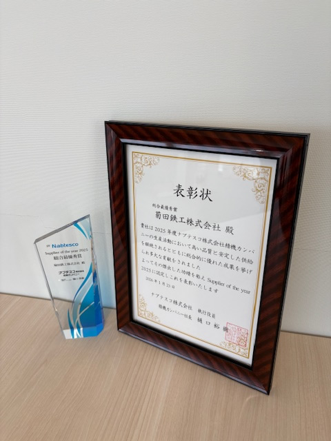 ナブテスコ(株)様 品質優秀賞ナブテスコ(株)様 納期優秀賞 |